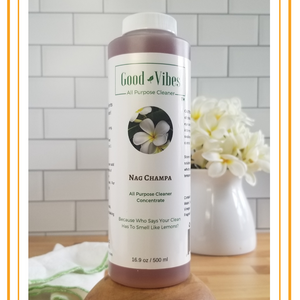 Good Vibes All Purpose Cleaner is a powerful, plant based household cleaner that comes in amazing fragrances. With scents like Frankincense & Myrrh, Sandalwood, and Nag Champa you can clean your home and change the whole vibe. Our All Purpose Cleaner comes in a recyclable bottle and is super concentrated, so a little goes a long way. Made of water, plant based soap, cleaning salts, vinegar and fragrance oils, Good Vibes All Purpose Cleaner cleans just about everything, really, really well.